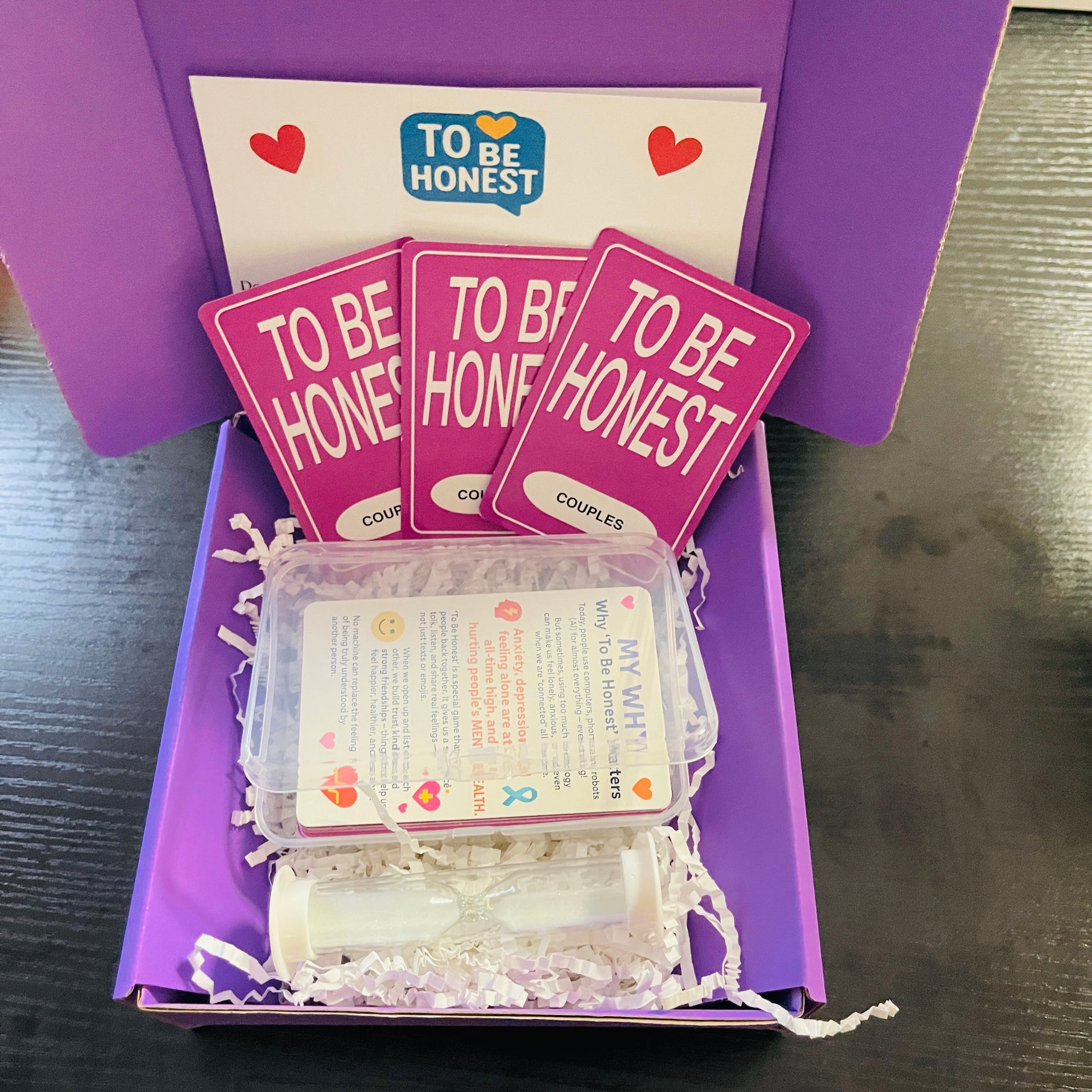 To Be Honest: Couples Edition is designed to open the door to deeper communication and honest dialogue between partners. With thoughtful and revealing prompts, this edition helps couples explore vales, expectations, and compatibility in a fun u=yet meaningful way. By encouraging openness and real conversations, it gives partners the chance to strengthen their bond - or gain clarity sooner - so they don't spend years in relationships that may not align, It's more than a game, it's a tool for building trust, intimacy, and lasting love.